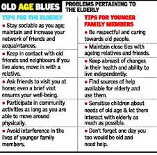 Old age should not mean the cessation of all initiatives and responsibilities.Show love and affection to your family members,ask after their welfare and extend whatever help you are capable of giving.Do not presume that all the giving and caring has to come from their side only,be proactive.This will not only keep you healthy and happy;but also well connected and appreciated.